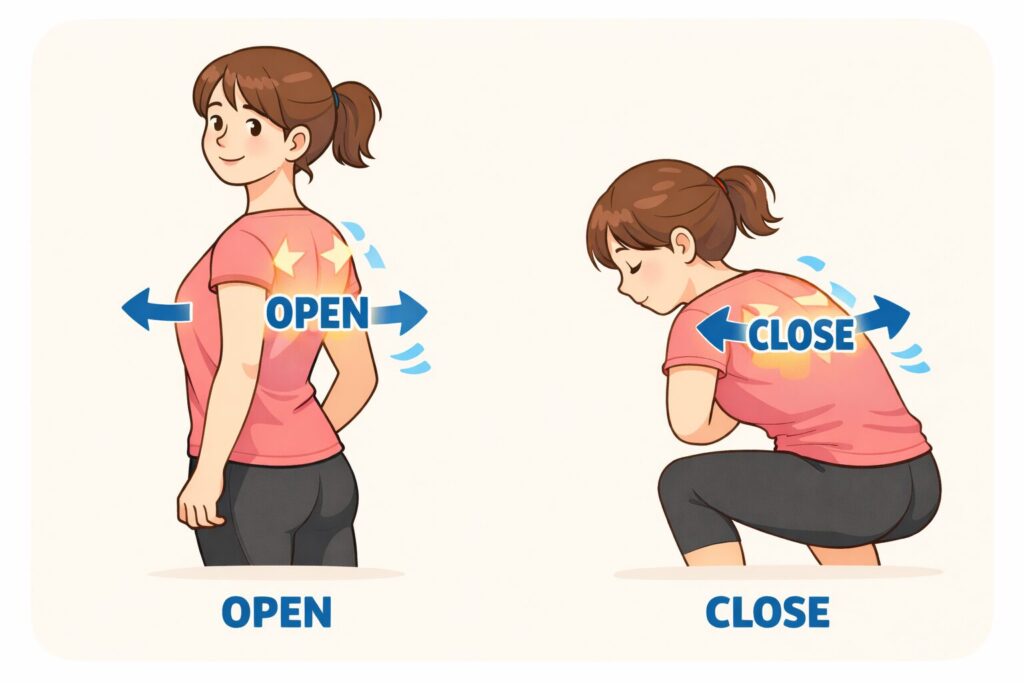 肩甲骨の「寄せる・開く」ができていれば十分です。